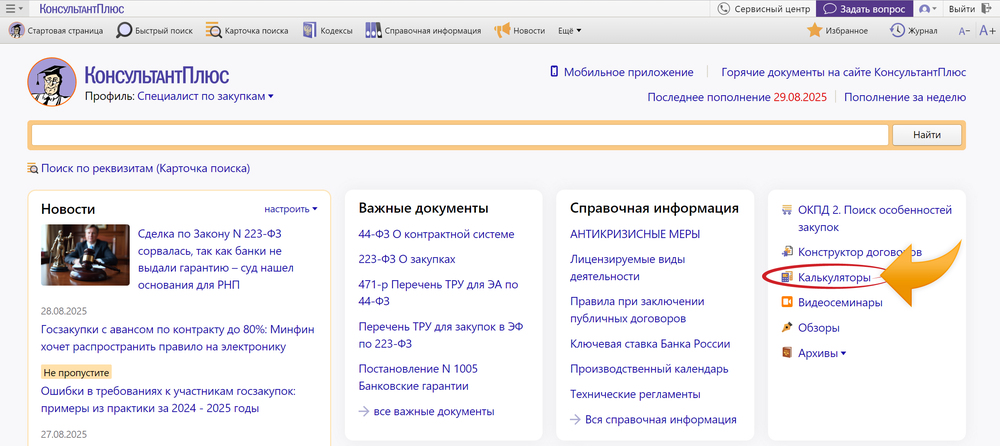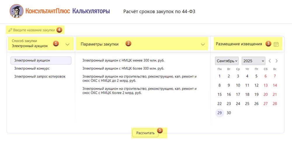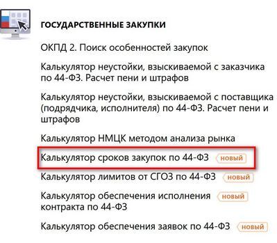Новый калькулятор КонсультантПлюс для расчета сроков закупок по 44-ФЗ